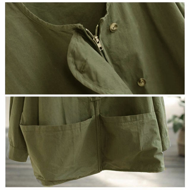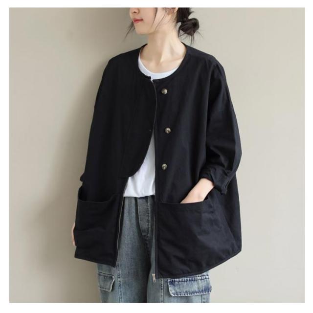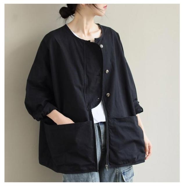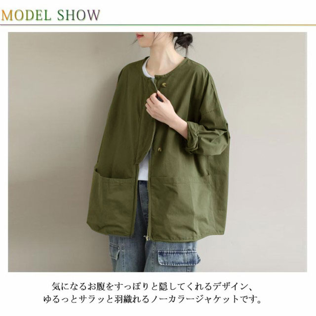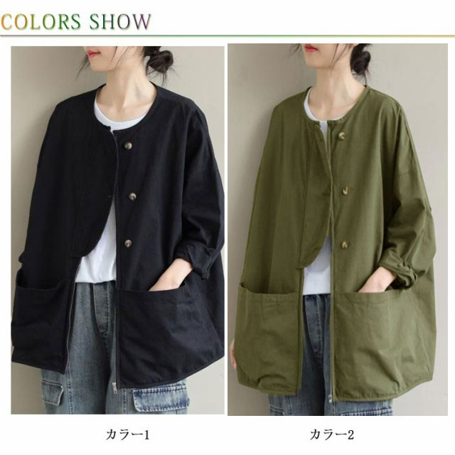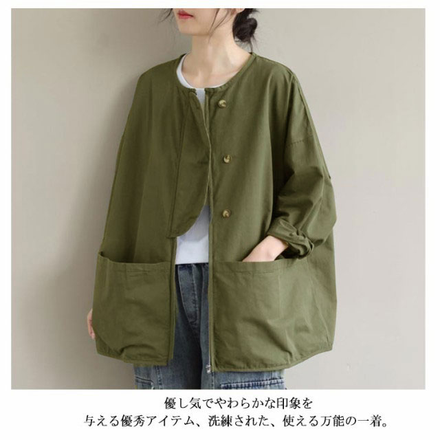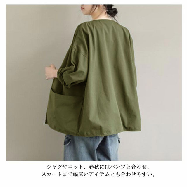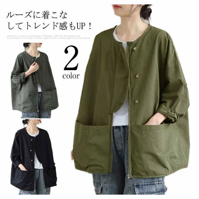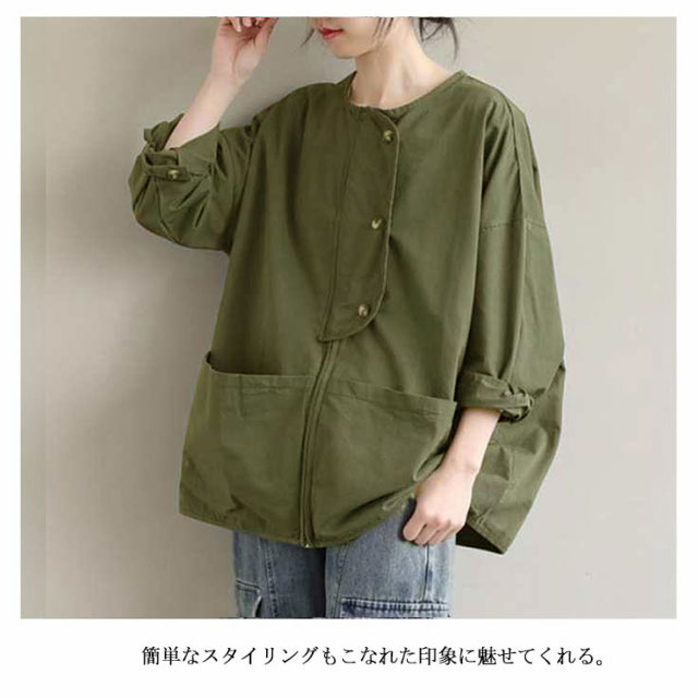 マウンテンパーカー ジャケット ノーカラージャケット ブルゾン ゆったり ライトアウター 大きいサイズ 体型カバー 長袖 スプリングコート ビッグシルエット カジュアル M L XL 2XL
