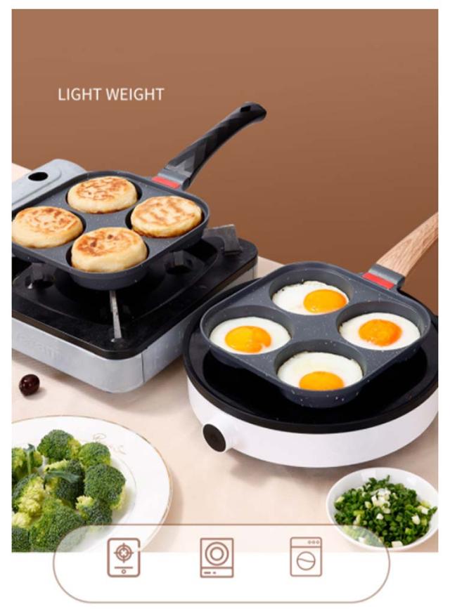 | 四つ穴のデザイン!味の異なる4つの卵またはハンバーガーを同時に揚げるか、4つの異なる食品を揚げることができます。これはエネルギー効率がよく、家族の毎日の朝食のニーズを満たします。 フライパンは、卵、ステーキ、ハンバーガー、ソーセージなどを揚げるために使用できるため、時間を節約できます。 延長されたベークライトハンドルは、効果的に断熱材を加熱し、火傷を防ぐことができます。 焦げ付き防止加工!マーブルコーティングを美しく加工しているので、焦げ付きが無く調理も洗浄も楽々! 簡単で高速!調理はより速くて簡単で、いくつかの簡単なステップだけで済みます。フライパンの底に油を塗ってからフライパンに入れてフライパンに入れ、へらで裏返して操作を繰り返して食べる。 | |