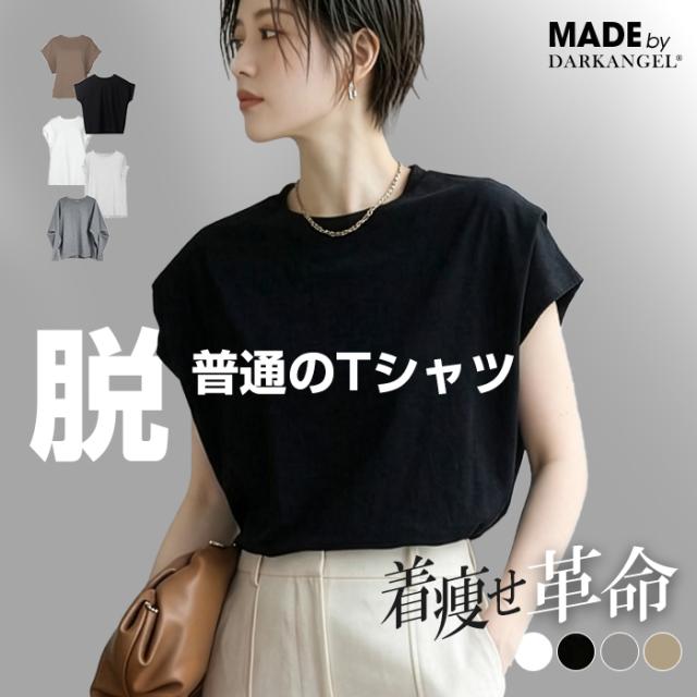 MAX1,500円OFFクーポン!Tシャツ レディース 着痩せ 華奢見え フレンチスリーブ 無地 トレンド 二の腕カバー Uネック ラウンドネック トップス ゆったり オーバーサイズ【 脱・普通のTシャツ 】 ダークエンジェル 送料無料 冬新作