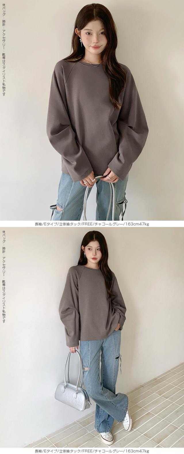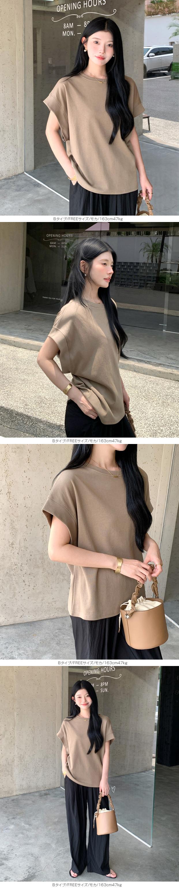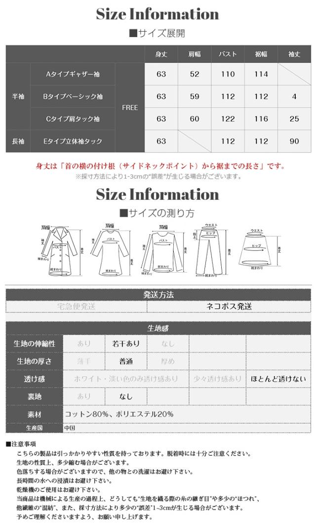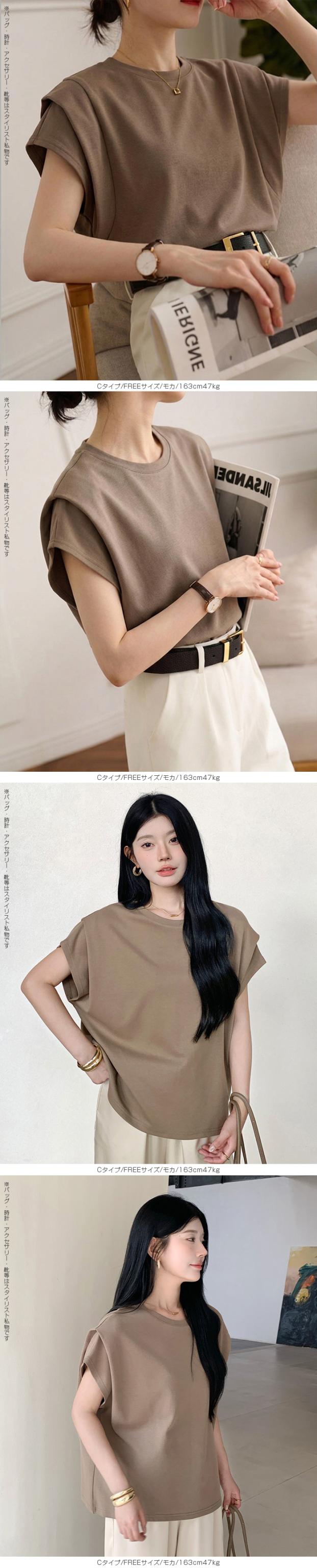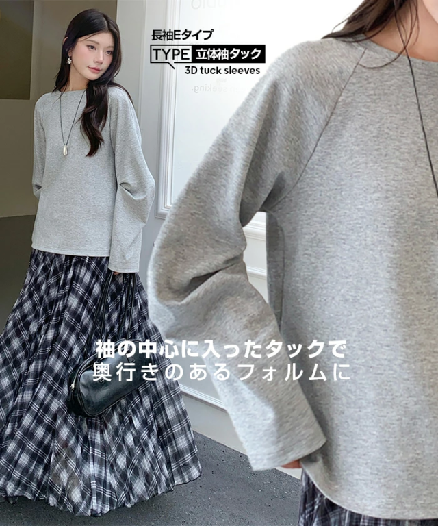 【 着痩せ革命 脱・普通のTシャツ 】 旬の“立体スリーブ”で腕ラインをすっきり見せる袖デザインTシャツ。 好みに合わせて半袖/長袖の2タイプから選べます。 半袖タイプ(A/B/C)… 袖デザインごとに異なる表情が楽しめる3タイプ展開。 Aタイプはギャザー入りのフレンチスリーブでやわらかく女性らしい印象に。 Bタイプはシンプルで着回しやすいベーシックデザイン。 Cタイプは肩タック入りで立体感があり、こなれた雰囲気を演出します。 ボリュームのある袖は二の腕を自然にカバーし、 脇部分はインナーが見えにくい設計で安心感も◎ クルーネック×無地で合わせやすく、 デニムからきれいめパンツまで幅広く対応します。 長袖タイプ(E)… 肩まわりはラグラン切替で動きやすく、 袖のタックデザインが立体感をプラス。 ゆったりとしたシルエットが体のラインを拾いにくく、 季節の変わり目にも使いやすい一枚です。 ゆるさのあるディテールがこなれた印象を演出。 コットン混のやさしい肌触りで着心地も良く、 デイリーユースにぴったりのアイテムです。 さらに半袖タイプは人気につき再販! ブラック/ホワイト/モカ/杢グレーの万能カラーで、 春・夏・秋とロングシーズン活躍します。 《商品ポイント》 ・半袖タイプ再販:人気のA/B/Cが再入荷 ・選べる4タイプ:用途や好みに合わせて選択可能 ・立体袖デザイン:二の腕を自然にカバー ・ラグランスリーブ(長袖):動きやすく快適 ・ゆったりシルエット:体型を拾いにくい ・無地デザイン:着回し力の高いベーシック仕様 ・コットン混素材:肌触りがやさしく快適 《デザイン・シルエット》 ・クルーネックで首元すっきり、アクセサリーも映える ・ヒップにかかる丈感で体型カバー ・ストレート寄りの身幅でバランスよく着用可能 ・袖の立体デザインで自然な細見えをサポート 《コーディネート提案》 ・デイリー:ワイドデニム+スニーカーでラフに ・きれいめ:タックパンツ+ローファー+ジャケット ・フェミニン:スカート+バレエシューズで上品に ・トレンド:ベストやジレを重ねたレイヤードスタイル 《サイズ・カラーバリエーション》 サイズ:FREE カラー:ホワイト/ブラック/モカ/杢グレー タイプ:(半袖)Aタイプギャザー袖 (半袖)Bタイプベーシック袖 (半袖)Cタイプ肩タック袖 (長袖)Eタイプ立体袖タック 《素材・機能性》 素材:コットン80%、ポリエステル20% ・透け感:ほとんど透けない ・伸縮性:若干あり ・厚み:普通 |