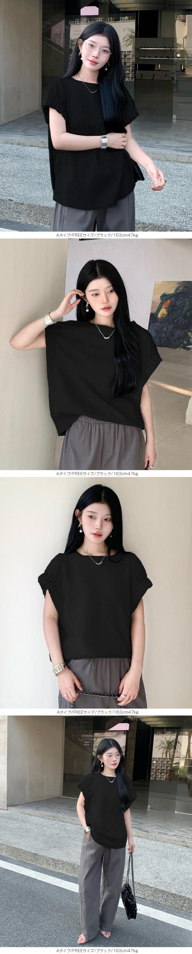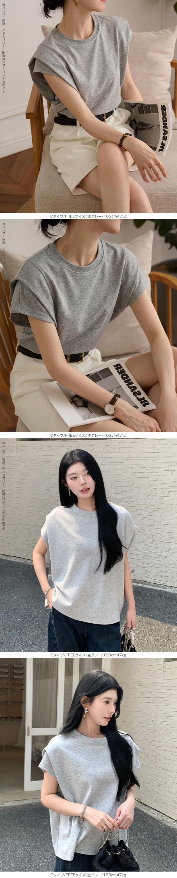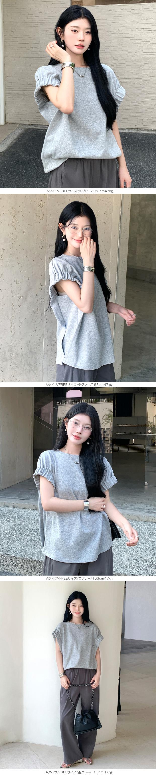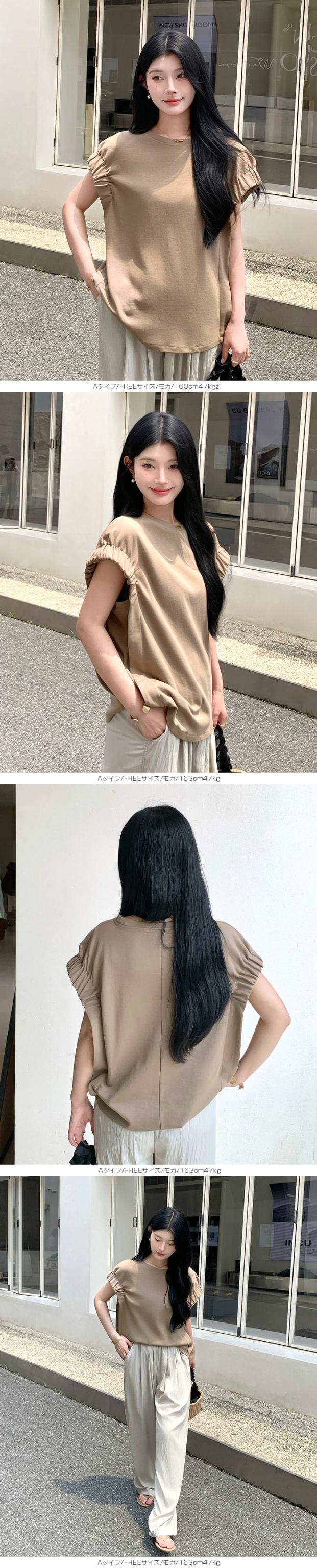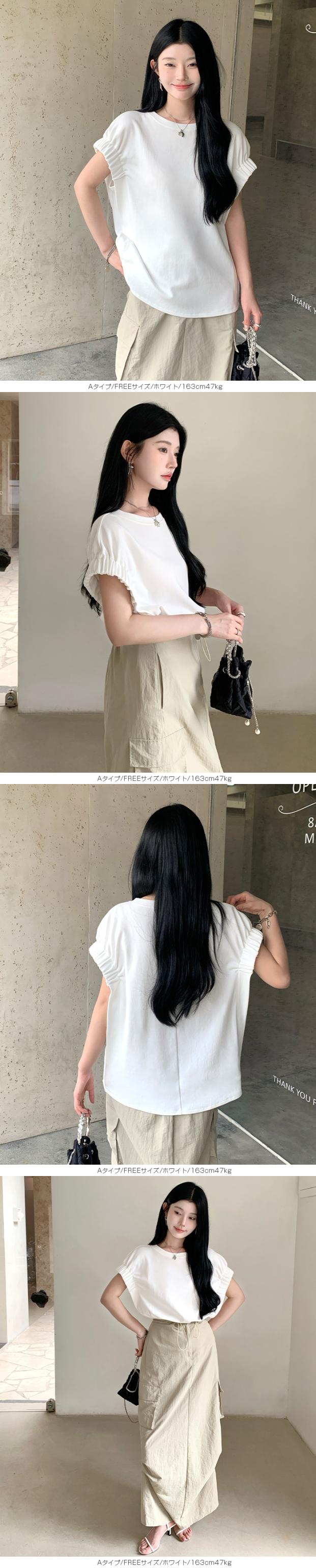 【 ギャザーフレンチスリーブTシャツ 】