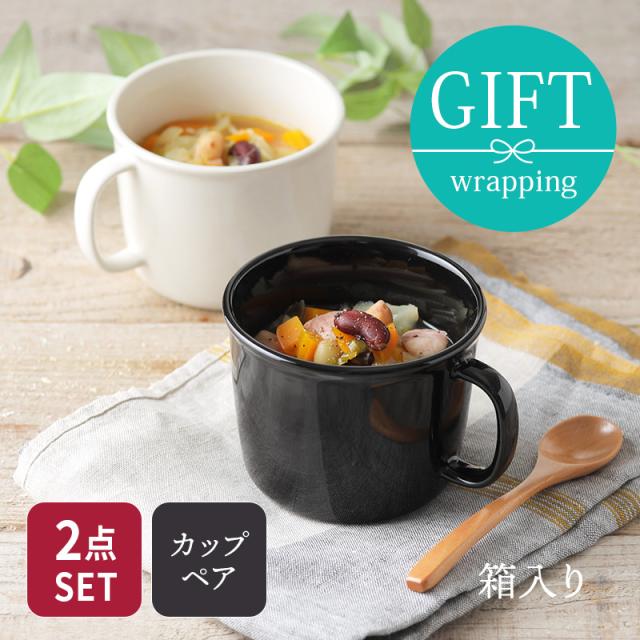 ペアマグカップ ホーロー風 390cc ホワイト×ブラック 箱入り 送料無料結婚祝 ギフト 新生活 プレゼント 箱入り マグカップ マグ カップ コップ コーヒーマグ コーヒーカップ ティーマグ