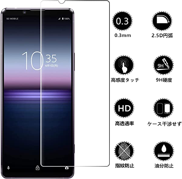 【対応機種】FOR Sony Xperia1 ii SOG01 / SO-51A 用のフィルム 強化ガラス 液晶保護フィルム。