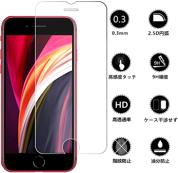 対応機種:iPhone 6/6s/iPhone8/iPhone7/ iPhone SE 第3世代 (2022) / iPhone SE 第2世代 (2020) フィルム 強化ガラス 液晶保護フィルム