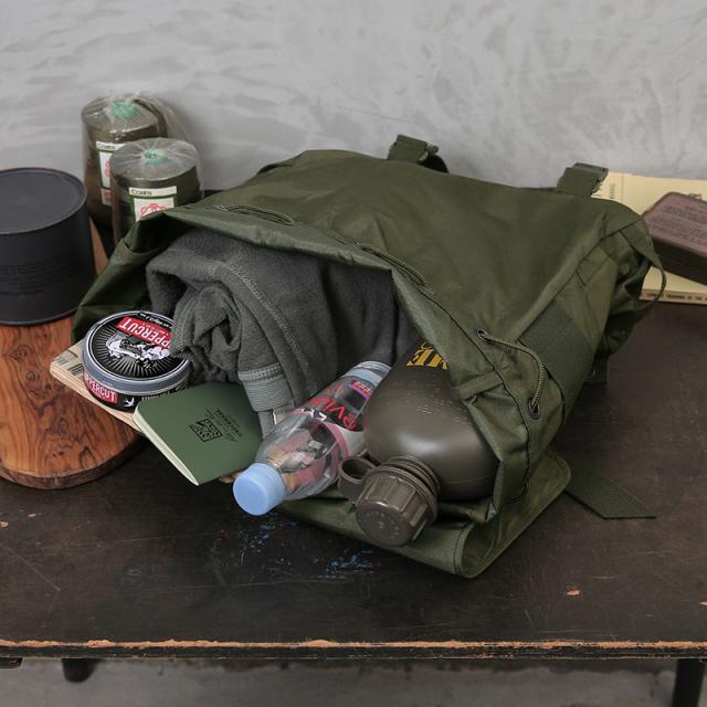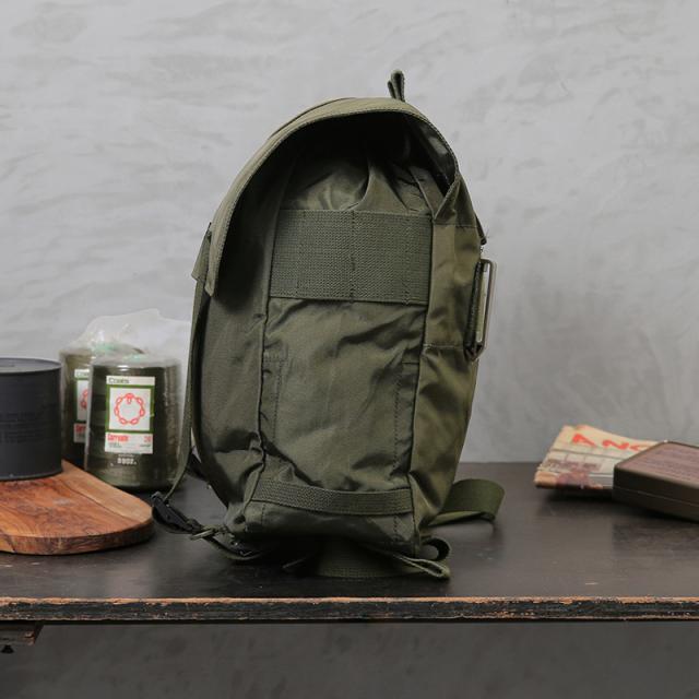 米軍のアイテムをデザインソースとして使用することの多いオーストリア軍ですが、こちらは生地裏面に撥水加工が施された耐久力のあるナイロン製であり、米軍のALICEシステムを取り入れたデザインのバックパックとなっています。背面のALICEクリップはベルトなどに装着してウエストパックとしても使用することができます。バッグの上部と下部にアイレットがついており、付属のユーティリティーストラップを上部のアイレットに取り付ければショルダーバッグに、別のハーネスを下部のアイレットに取り付けることでバックパックとして使用することができます。(※バックパック用のハーネスは付属しておりませんので、ご了承ください)