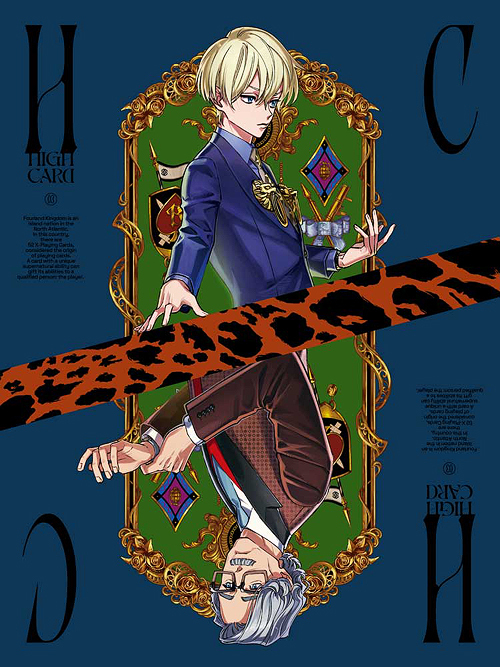 命運を賭けたカード争奪戦、開幕! トムス・エンタテインメント×河本ほむら×武野光原作の『HIGH CARD』がTVアニメ化! Blu-ray第3巻。 監督に『長門有希ちゃんの消失』『サクガン』などの和田純一、脚本に『京都寺町三条のホームズ』の山下憲一や犬飼和彦、永井真吾、キャラクターデザインには『ギヴン』作画監督を務めた河野のぞみを起用! さらに、総作画監督は河野のぞみと『ギヴン』永田陽菜、アニメーション制作は『海辺のエトランゼ』『潔癖男子! 青山くん』などのスタジオ雲雀が担当! 一攫千金を狙って乗り出したカジノで遭遇した事件をきっかけに《ハイカード》にスカウトされ、老舗自動車メーカー・ピノクル社オールドメイド支店の営業見習いとして働くことになる主人公 フィン・オールドマン役に佐藤元、ピノクル社オールドメイド支店の営業担当であり、フィンの教育係となるクリス・レッドグレイヴに増田俊樹、ピノクル社の社長の息子で、オールドメイド支店の店長にして《ハイカード》のリーダー レオ・コンスタンティン・ピノクル役に堀江瞬、ピノクル社オールドメイド支店の経理兼事務職員で《ハイカード》の紅一点 ウェンディ・サトー役に白石晴香、システム管理兼営業担当で植物を愛するインテリ ヴィジャイ・クマール・シン役に梅原裕一郎を起用! さらに、小野大輔、関俊彦、関智一、森川智之など豪華声優陣が多数出演! 第7話〜第9話収録。
