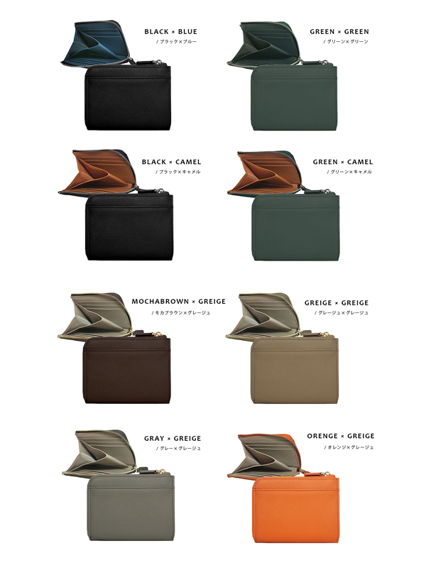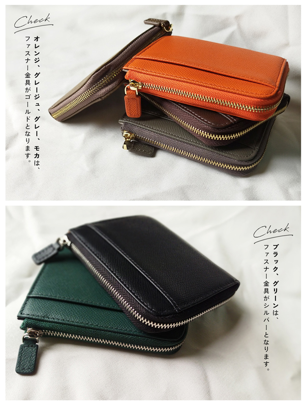 オレンジ、グレージュ、グレー、モカはファスナー金具が「ゴールド」、