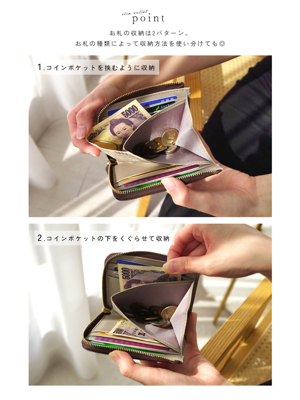 2パターンで収納可能なので、お札の種類や収納方法を使いわけても◎