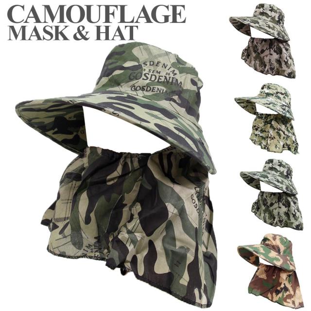 カモフラ柄のマスク付きハットです。