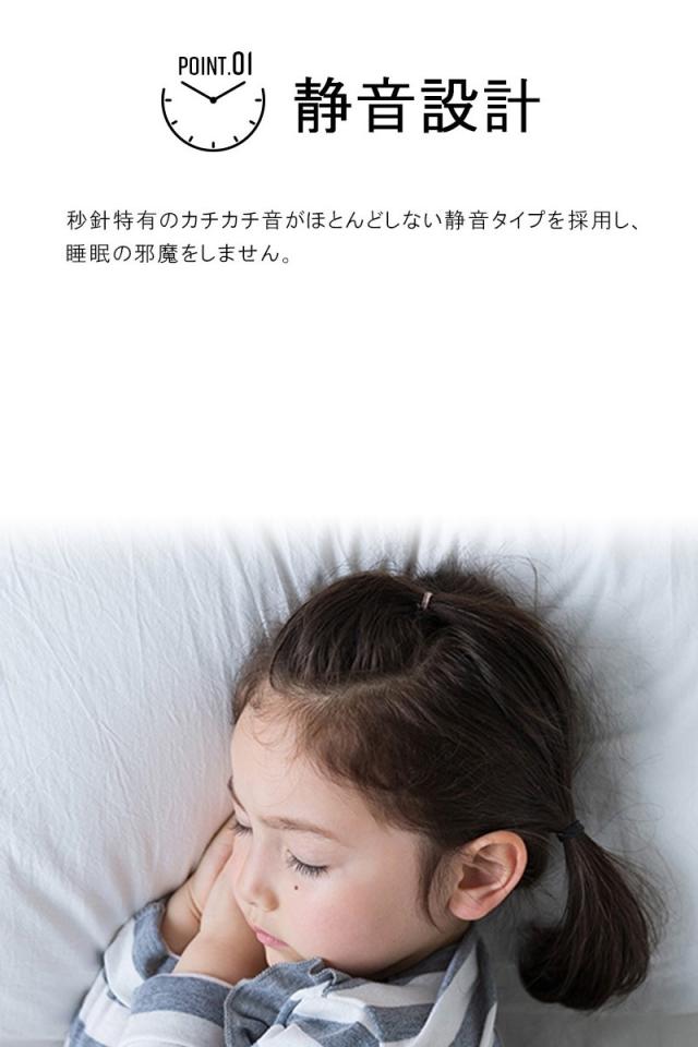 秒針特有のカチカチ音がほとんどしない静音タイプを採用し、睡眠の邪魔をしません。