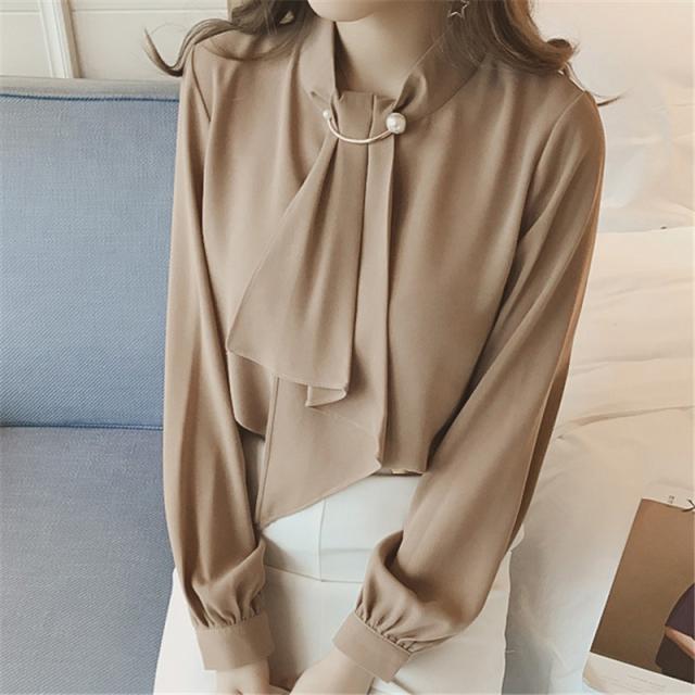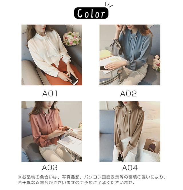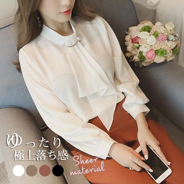 シャツブラウス レディース きれいめ 春夏秋 オシャレ セレモニー シフォン オフィス 長袖 トップス ハイネック 上品 通勤 ゆ