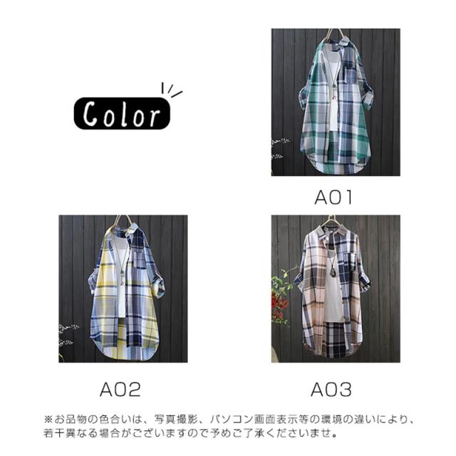 ロングシャツ シャツ レディース ロング 長袖 ブラウス チェック シャツワンピース 春夏 春服 夏服 きれいめ チュニック トッ
