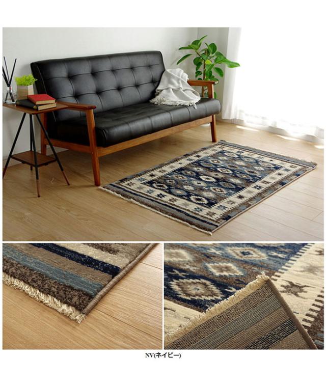 ウィルトンカーペット プルメリア 80x130cm モルドバ製 ウィルトン織り キリム柄 エスニック風 ホットカーペット対応 床暖房対応 汚れにくい 耐久性 リビング