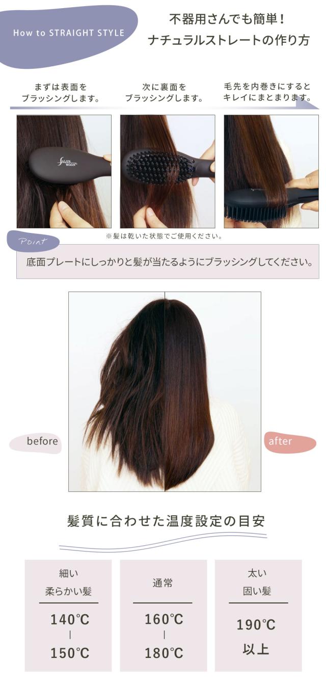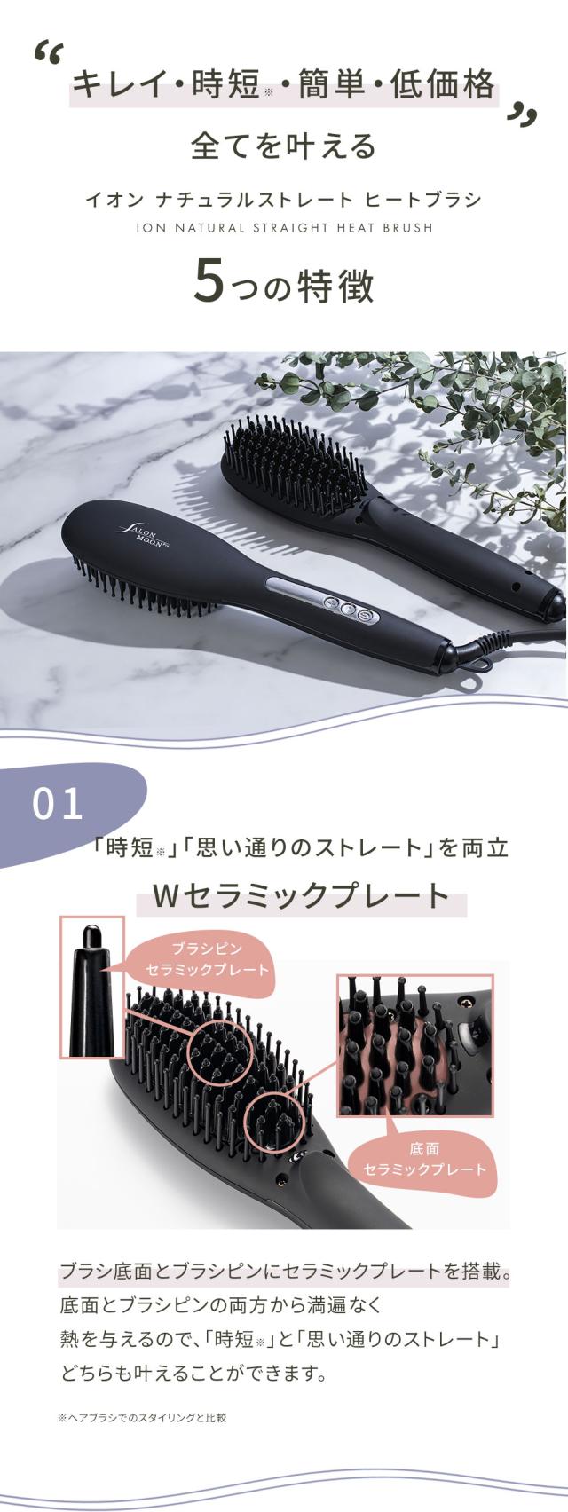 アイロンブラシ ヒートブラシ ヘアアイロン ストレートアイロン SALONMOON ヘアブラシ マイナスイオン サロンムーン イオン ナチュラルストレート