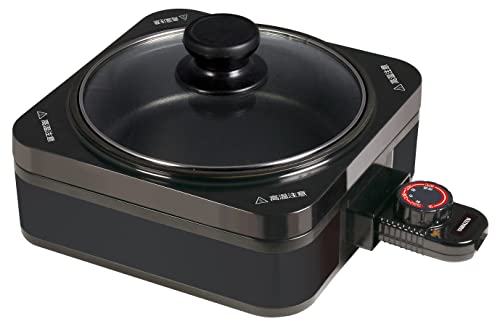 [山善] ホットプレート グリル鍋 一人暮らし用 プレート2種 (波型プレート / 鍋プレート) 着脱式プレート 温度調節機能付き ブラック YHC-W601(B)