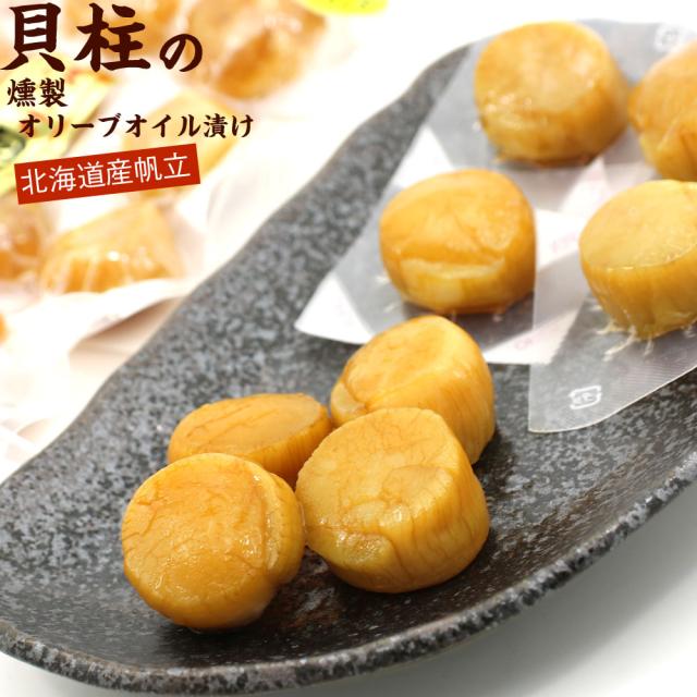 ほたて貝柱 燻油漬 ソフト ホタテ貝柱 大玉30粒(14g前後/1粒) 個包装 チャック袋入り 燻製オリーブオイル仕立て