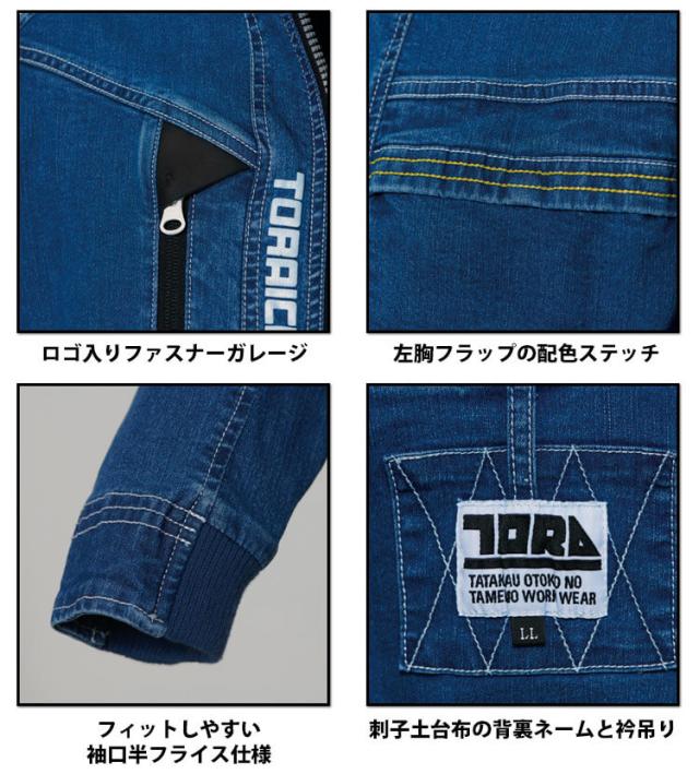 作業服 作業着 TORAICHI 寅壱 トライチ 春夏 接触冷感 デニムワークジャケット 8880-124 サイズS〜3L