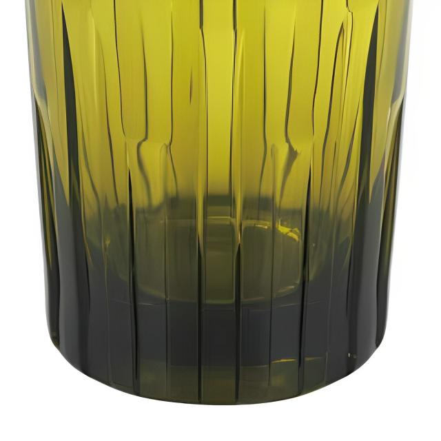 外側の表面は凸凹で底から上部に向かって伸びる幅広のストライプです。光が反射してミステリアスな世界観を演出します。内側はツルッとフラットなのでお手入れしやすいデザインです。