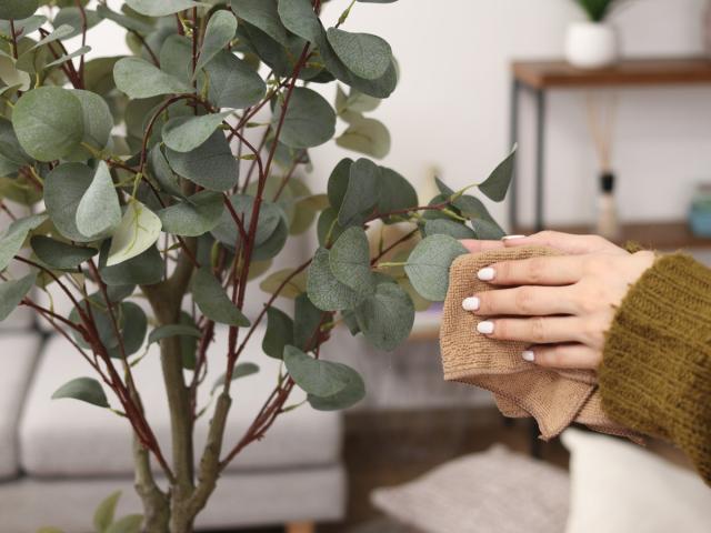 フェイクグリーンなので、水やりや日光浴などのお世話不要で一年を通して楽しむことができます。ホコリが気になる場合は、乾いた布で拭くだけで簡単にお手入れ可能です。