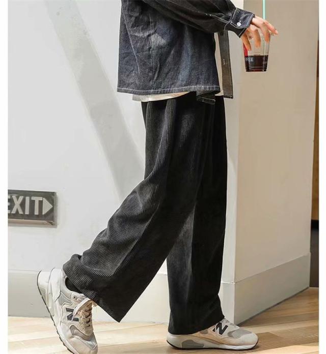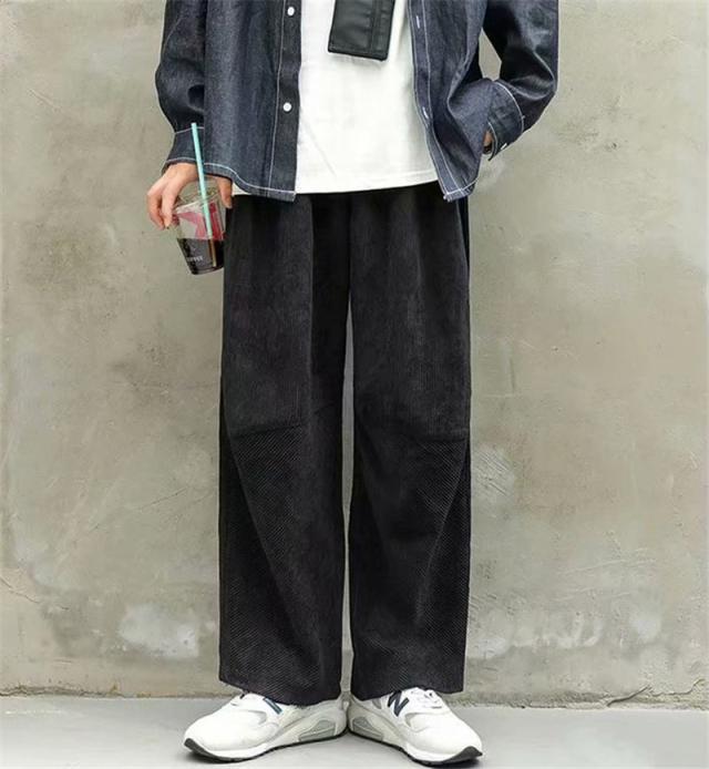 ワイドパンツ メンズ コーデュロイ ゆったり 無地 ボトムス 紳士用 おしゃれ ロング丈 体型カバー かっこいい 脚長効果 カジュ