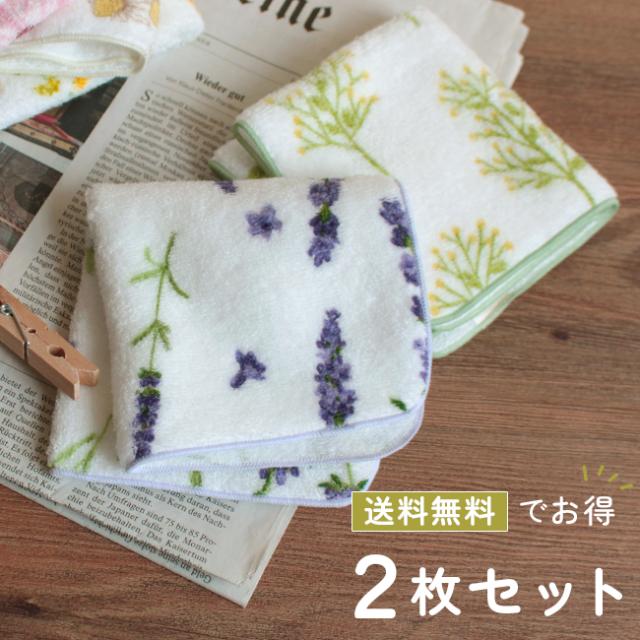 ハンカチ 花柄 2枚セット 送料無料 ふわふわ 無撚糸 ハンドタオル タオルハンカチ ウォッシュタオル 日本製 綿100% ピンク お花 ナチュラル 草花 ハーブ フラワー 春 プレゼント ボタニカル 母の日 花以外 コットン レディース かわいい おしゃれ