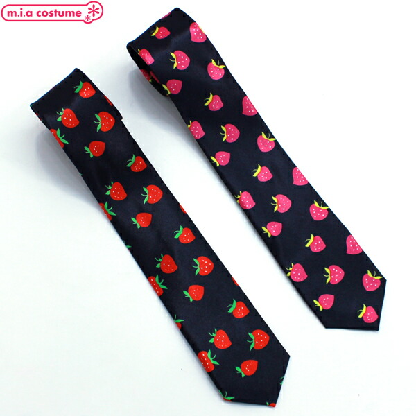 1281G■【送料無料・即納】B品 ネクタイ 細身プチイチゴ柄 色:黒×赤/黒×ピンク 苺 ストロベリー スクール カジュアル オシャレ ハロウィン コスプレ
