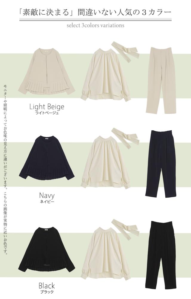 | 重さ(M/L) | ブラウス:約345g / 約357g ジャケット:約567g / 約612g パンツ:約572g / 約612g |