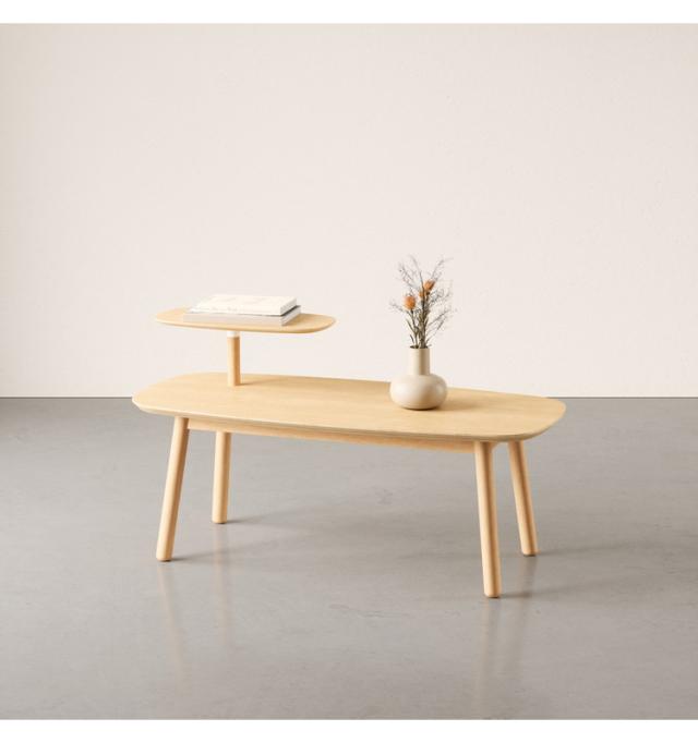 ■天然木の柔らかな曲線仕上げのコーヒーテーブルはどんな部屋にも合うように設計されています。