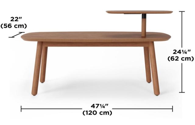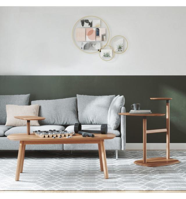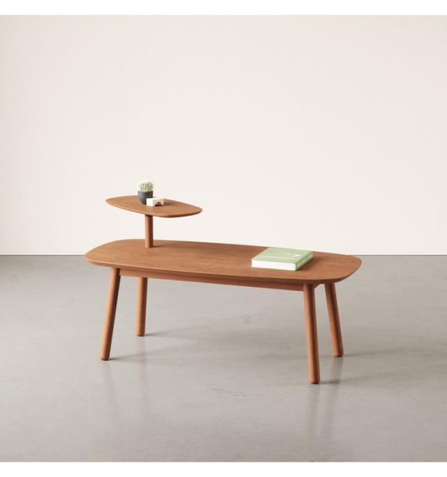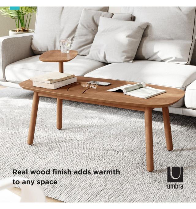 天然木の柔らかな曲線仕上げのコーヒーテーブルはどんな部屋にも合うように設計されています。