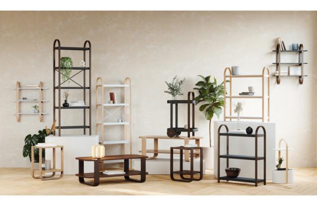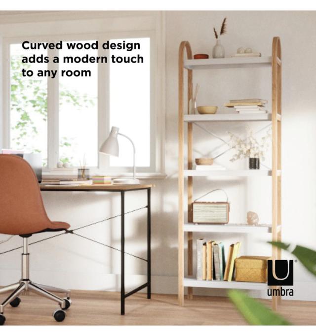 umbraのベルウッドシリーズは、お揃いのコーヒーテーブル、サイドテーブル、傘立て、トイレの棚、壁の棚などがあります。