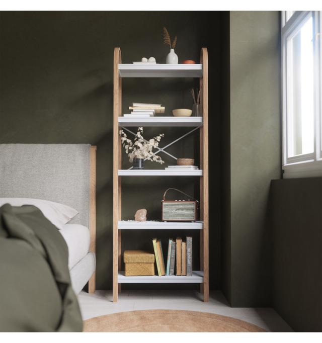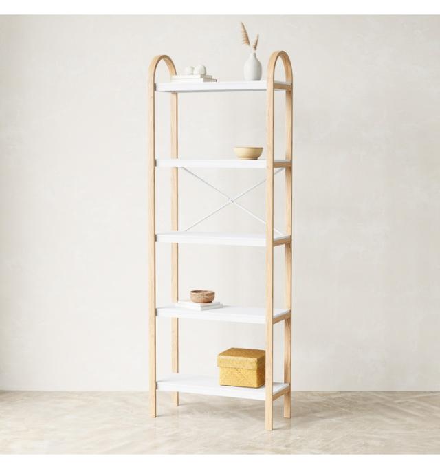 装飾的で用途の広いベルウッド自立型段ラックは、さまざまな部屋でディスプレイや保管に使用できます。