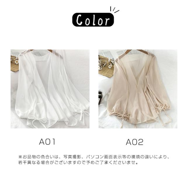 - 主に、外出時のUV対策に使用しています。従来、普通のカーディガンを着用していましたが、最近は猛暑続きのため、シフォン系のものを探していました。特に日焼けもしませんし、軽くてかさばらないので、私には良かったです。