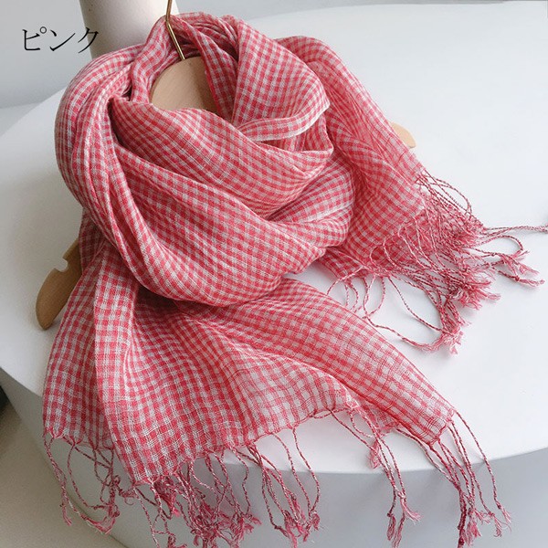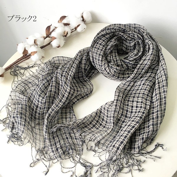 マフラー 大判 亜麻 麻 ストール レディース 春 夏 秋 用 混 タオルマフラー 綿麻 薄手 透け感 レディース チエック 全10色 プレゼント ギフト 夏用ストール uv 接触冷感 ガーゼストール uvカット 冷房対策 dy002l9l9la