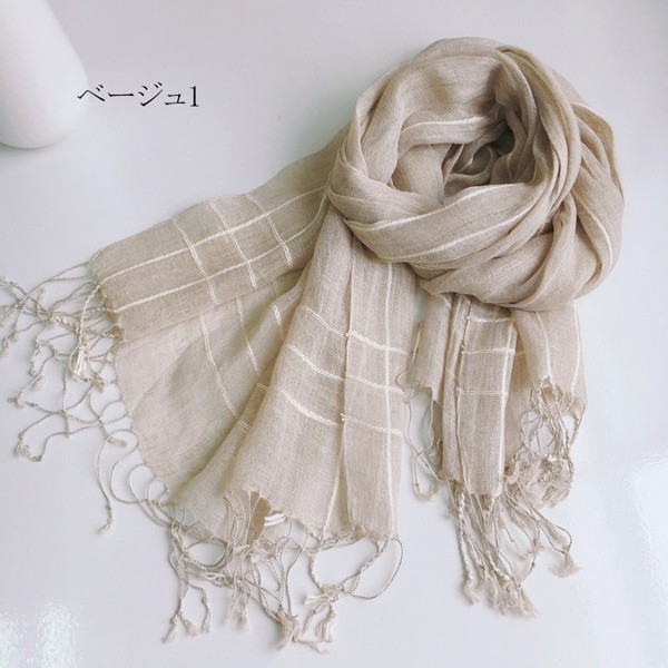 マフラー 大判 亜麻 麻 ストール レディース 春 夏 秋 用 混 タオルマフラー 綿麻 薄手 透け感 レディース チエック 全10色 プレゼント ギフト 夏用ストール uv 接触冷感 ガーゼストール uvカット 冷房対策