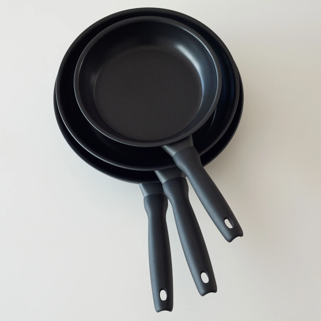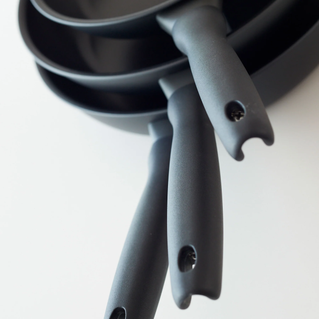 ●リム周りやリベットにもふっ素樹脂加工を施すことで、食材がこびりつきにくく、お手入れ簡単。