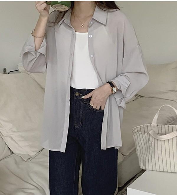 【レビュー投稿で+5%還元】シアーシャツ 透け感 レディース 日焼け止め ブラウス 長袖 トップス シャツ 前開きシャツ 重ね着 オーバーサイズ トレンド シースルー シンプル カジュアル おしゃれ ゆったり 日焼け対策 冷房対策 羽織 夏物 春 bi030ze
