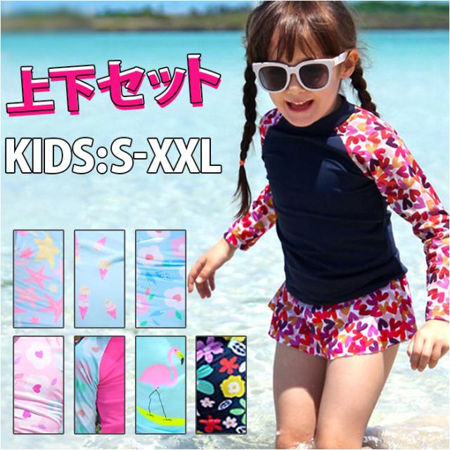 水着 女の子 セパレート 通販 2点セット 上下セット 上下 ラッシュガード 長袖 スカート パンツ キッズ 子供 かわいい 可愛い 子供水着 日焼け防止 女の子水着 ジュニア
