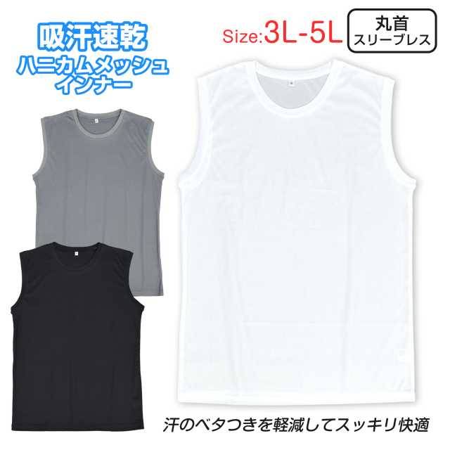 大きいサイズ ハニカムメッシュ 吸汗速乾 丸首 スリーブレス 。