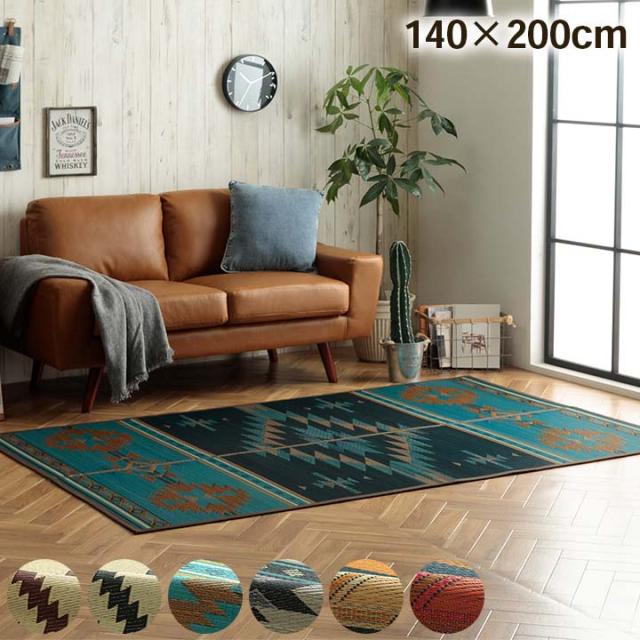 DXキリー キリムシリーズラグ い草ラグ カーペット キリム柄 エスニック ブルー 約140×200cm