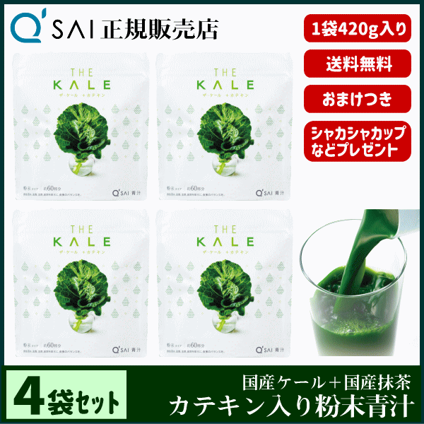 青汁 23%割引 キューサイ ザ・ケール+カテキン 420g 4袋まとめ買い +おまけ付 健康飲料 国産 抹茶配合 専用スプーン&シェイカー付