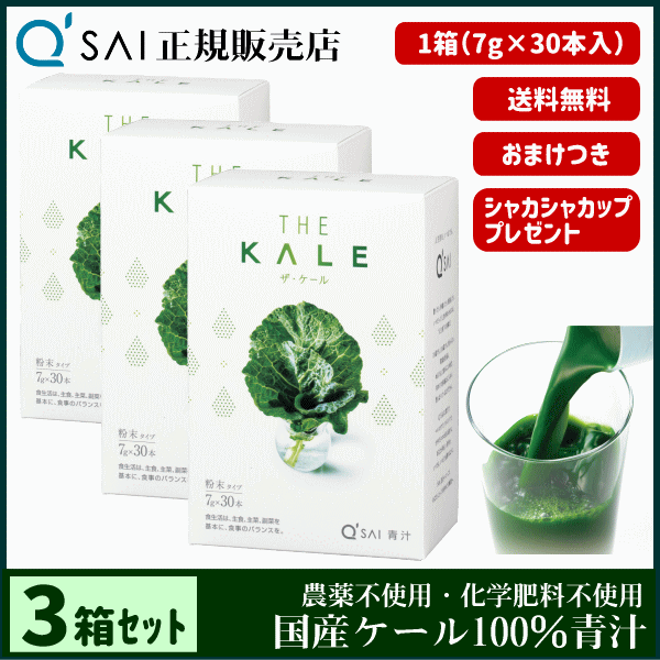 青汁 19%割引 キューサイ ザ・ケール 粉末 7g×30本 3箱まとめ買い +おまけ付 健康飲料 分包 国産 ケール100% 農薬不使用 専用シェイカー付