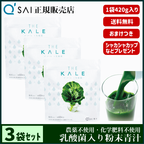 青汁 19%割引 キューサイ ザ・ケール+乳酸菌 420g 3袋まとめ買い +おまけ付 健康飲料 国産 善玉菌配合 農薬不使用 専用スプーン&シェイカー付