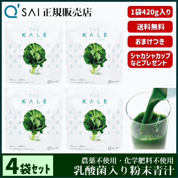 青汁 23%割引 キューサイ ザ・ケール+乳酸菌 420g 4袋まとめ買い +おまけ付 健康飲料 国産 善玉菌配合 農薬不使用 専用スプーン&シェイカー付