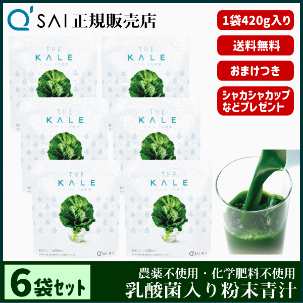 青汁 24%割引 キューサイ ザ・ケール+乳酸菌 420g 6袋まとめ買い +おまけ付 健康飲料 国産 善玉菌配合 農薬不使用 専用スプーン&シェイカー付