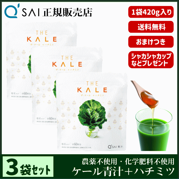 青汁 19%割引 キューサイ ザ・ケール+ハチミツ 420g 3袋まとめ買い +おまけ付 健康飲料 国産 蜂蜜配合 農薬不使用 専用スプーン&シェイカー付