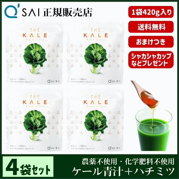 青汁 21%割引 キューサイ ザ・ケール+ハチミツ 420g 4袋まとめ買い +おまけ付 健康飲料 国産 蜂蜜配合 農薬不使用 専用スプーン&シェイカー付