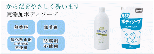 デリケートなお肌にもやさしい。合成界面活性剤を使用せず、純せっけん分と精製水から作ったデリケートなお肌にもやさしいボディソープ。