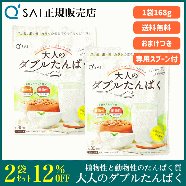 キューサイ 大人のダブルたんぱく 168g 2袋まとめ買い +おまけ付 サプリ プロテイン 植物性と動物性の良質なたんぱく質 プレーン味 低脂質