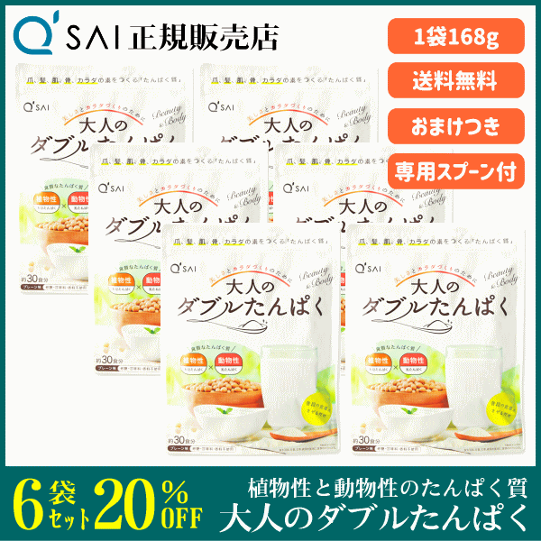 キューサイ 大人のダブルたんぱく 168g 6袋まとめ買い +おまけ付 サプリ プロテイン 植物性と動物性の良質なたんぱく質 プレーン味 低脂質