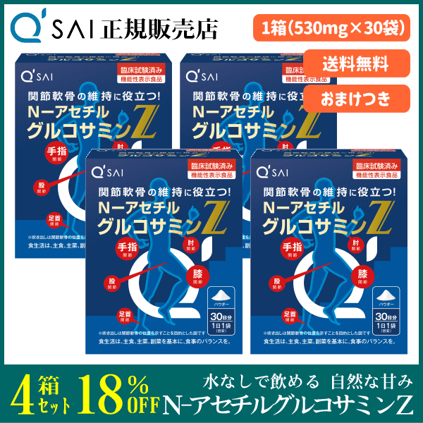 キューサイ N-アセチルグルコサミンZ 530mg×30袋 4箱まとめ買い +おまけ付 サプリ 機能性表示食品 粉末 関節軟骨の維持に役立つ 水なしで飲める 自然な甘み